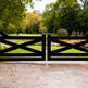 Lantern Cross Manor – Crisscross Steel Driveway Gate Model # DWG856