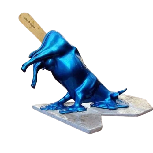 Add a playful and thought-provoking element to any space with this vibrant blue melting popsicle sculpture. Crafted from durable materials, this eye-catching piece features a fluid form that mimics a melting popsicle, creating a striking visual metaphor. Perfect for urban settings, public parks, art galleries, or modern interiors.