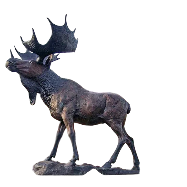 Enhance any outdoor space with this majestic moose sculpture. Crafted from high-quality materials, this impressive art piece features a lifelike representation of a moose standing proudly on a rock-like base. Perfect for parks, nature reserves, corporate landscapes, or as a striking focal point in urban settings.