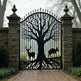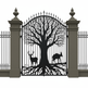 Laser Cut Root spire Gate – Tree of Life Wrought Iron Driveway Gate with Wildlife Silhouettes Model # DWG716