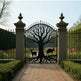 Let your entrance reflect the soul of the land. Root spire Gate features a commanding tree silhouette with bare branches reaching skyward and exposed roots anchoring the base—symbolizing growth, strength, and connection. Integrated into the trunk are silhouettes of a deer and wild boar, each representing grace and resilience. Framed by carved stone pillars and surrounded by blooming gardens, this gate is both a functional threshold and a sculptural tribute to nature’s balance.