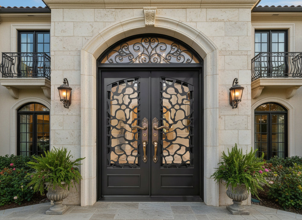 - Decorative Scroll-Work: Standard iron entry doors come with decorative 5/8 solid steel scrollwork.