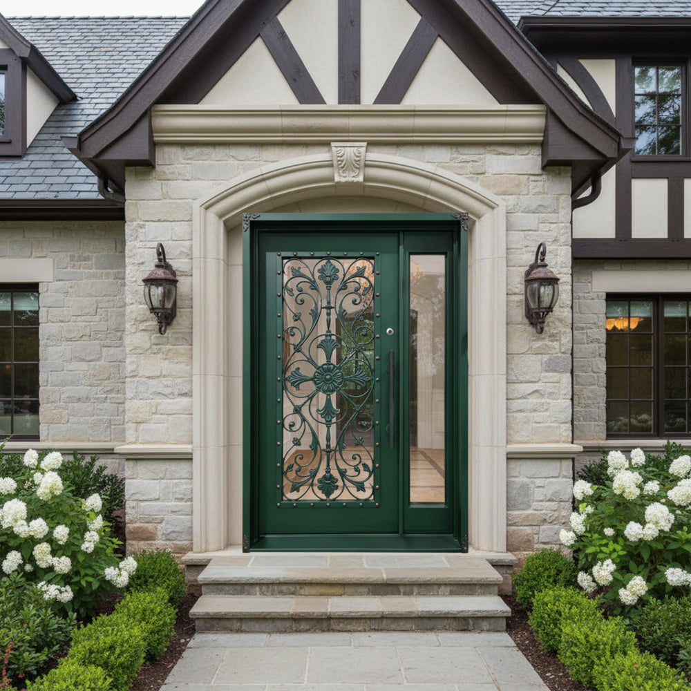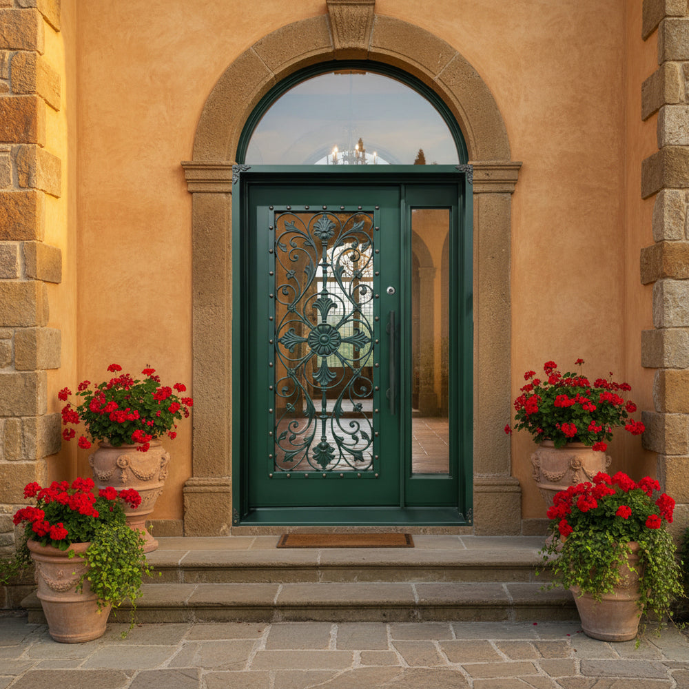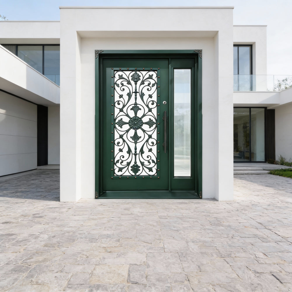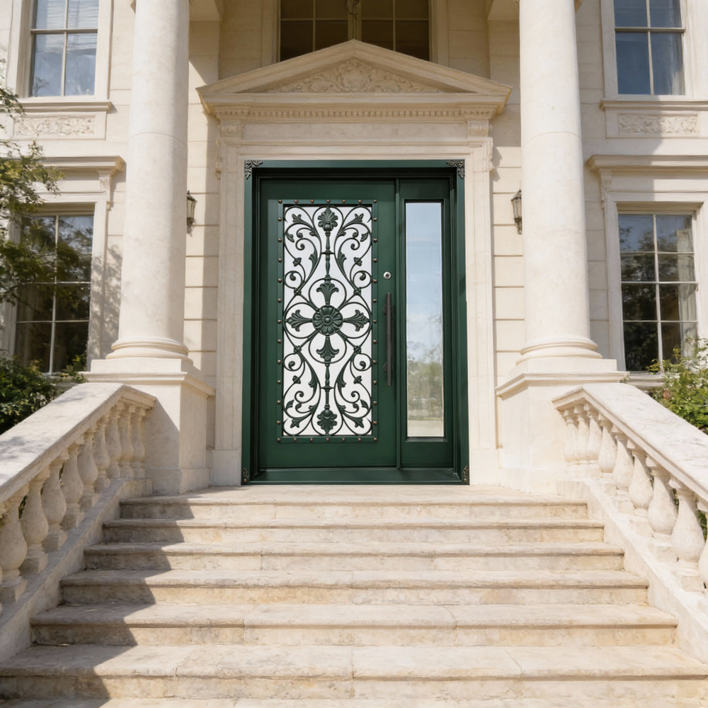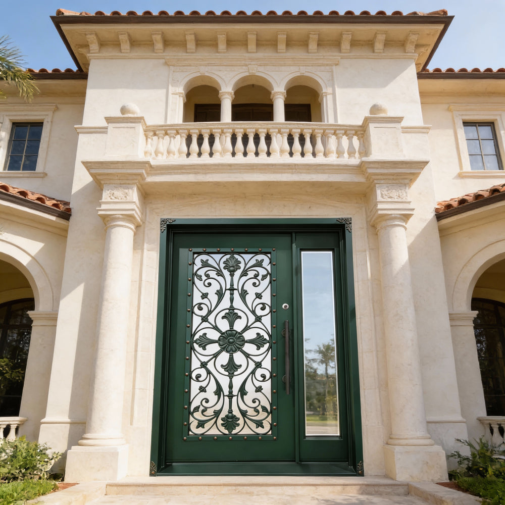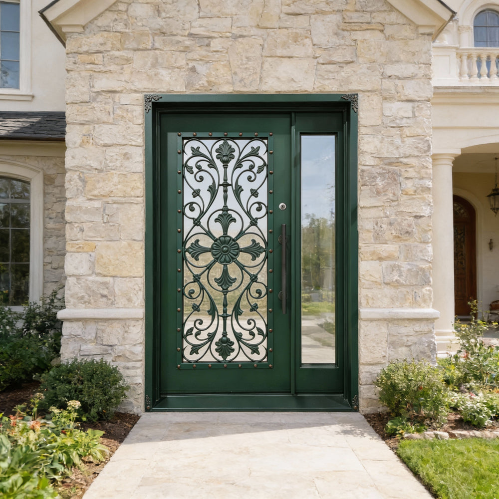 - Decorative Scroll-Work: Standard iron entry doors come with decorative 5/8 solid steel scrollwork.