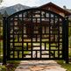 arched lattice man door, vine scroll metal gate, leaf motif garden entry, Canadian custom gate, Taimco decorative passage door, manual operation estate gate