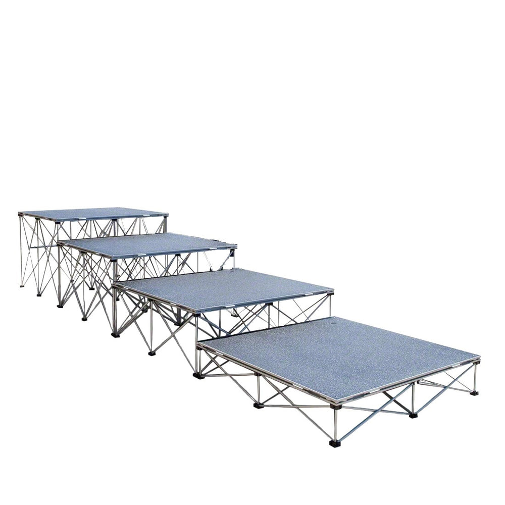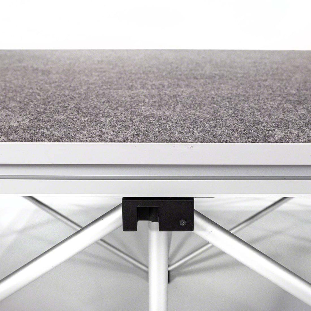 It features a unique internal locking system that ensures quick setup and teardown, with all components securely fastened for safe use. Each platform can support up to 153 lbs per square foot (900 kg/sq. meter) and is available in durable Carpet, Tuff Coat, or Industrial finishes. Step up your event game and take the stage with confidence!