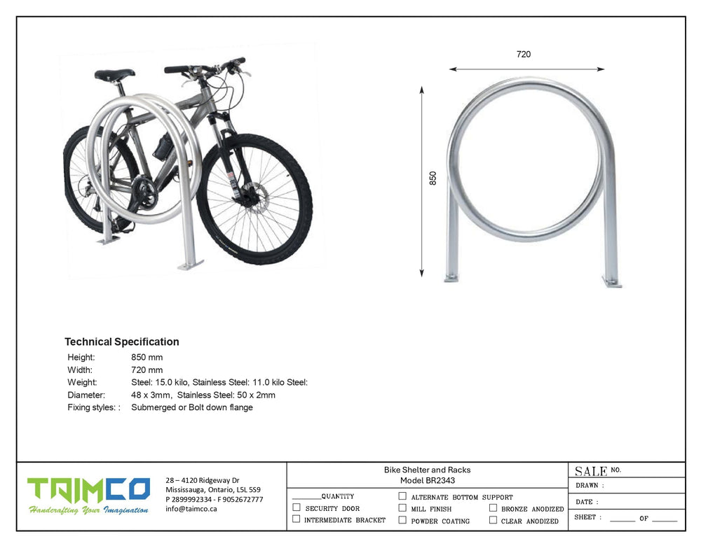 Secure and stylish, the TAIMCO Safety Pin Cycle Stand is perfect for various settings. Made from a robust 50mm diameter stainless steel tube, it offers top-notch bike storage without compromising quality. It is ideal for boosting your cycle storage capacity.