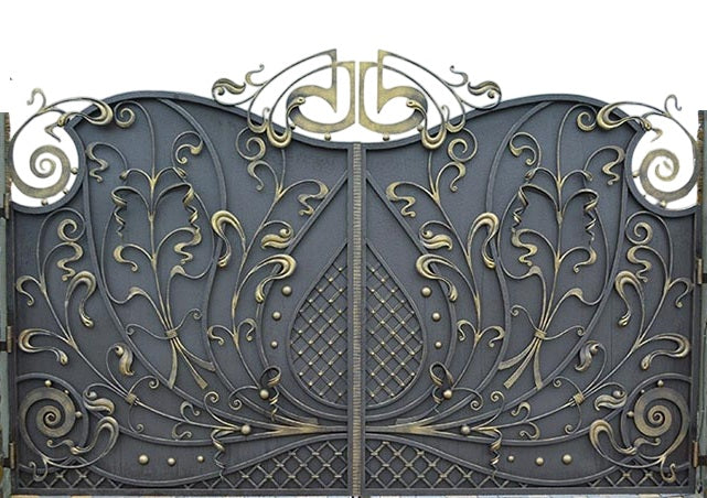 Luxury Ornamental Wrought Iron Gate with Gold Accents Model # DWG707