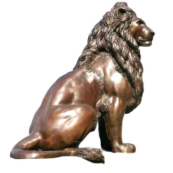 Description: Enhance your space with the regal presence of this Majestic Lion Sculpture. Crafted with meticulous detail, this sculpture features a seated lion with its head turned to the side, showcasing a full mane and intricate facial features. The shiny, metallic finish, likely bronze, adds a touch of elegance and sophistication to any setting.