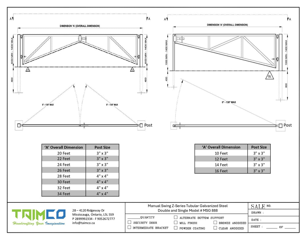 - Post sizes vary per gate width.