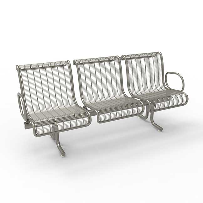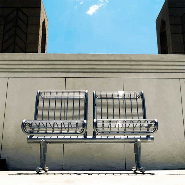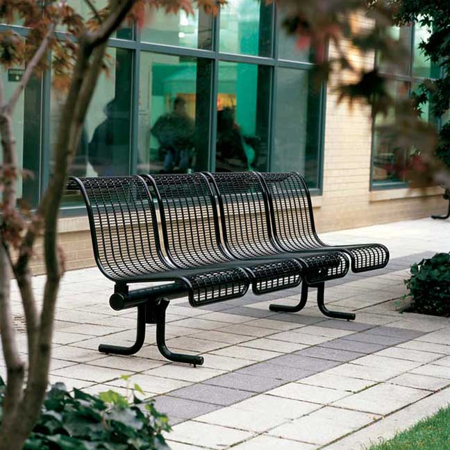 This Metal Bench is modular to be put together and form Multiple designs to meet site needs, it is a sturdy and durable outdoor bench made of electro-coated steel with an anti-corrosion finish. Its design is perfect for multi-layouts while maximizing seating capacity. The bench is ideal for commercial use and is available with optional memorial plaques.