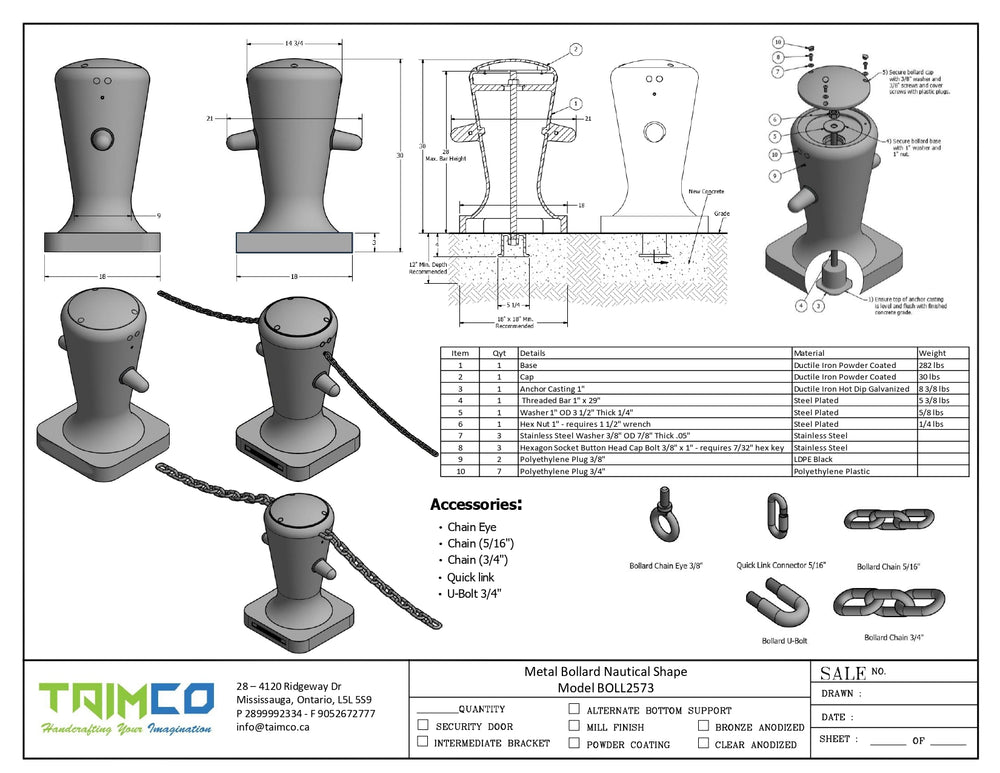 Metal Bollard Nautical Shape - Powder Coted - Model BOLL2573