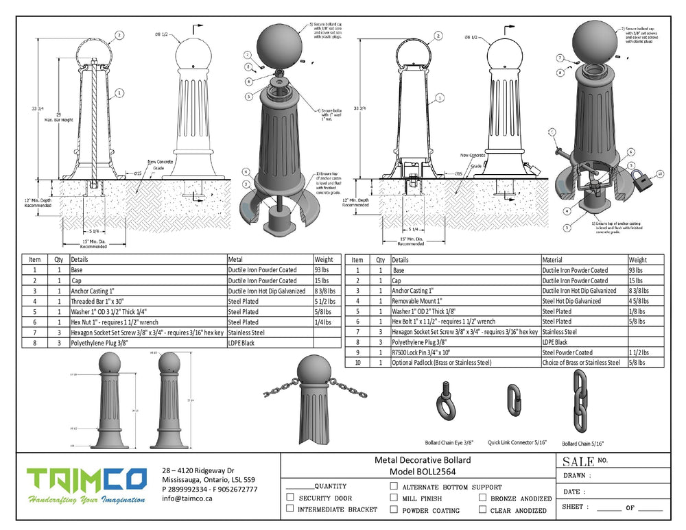 The BOLL2564 Decorative Bollard, crafted from versatile ductile iron, combines durability with elegance. Key features include: