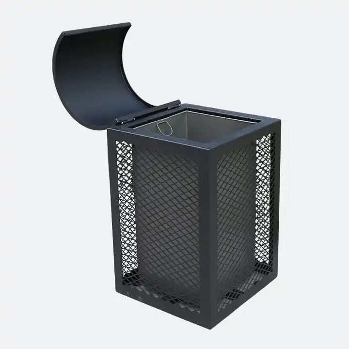 Metal Outdoor Diamond Square Steel Trash Can With Rain Bonnet Lid, 32 Gallon - Model WR222