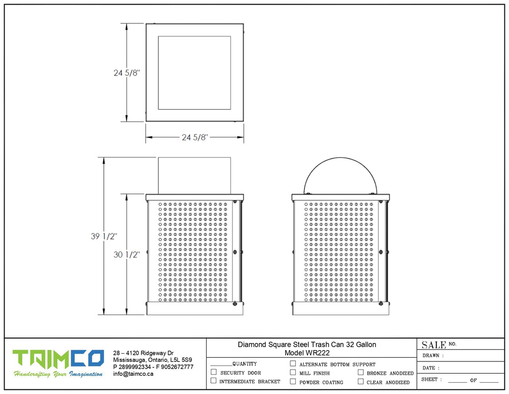 Built for durability and reliability, the TAIMCO WR222 32-Gallon Heavy-Duty Square Trash Receptacle is an ideal solution for high-traffic areas. Weighing 130+ pounds, this robust waste container stands firm against strong winds, ensuring stability in any outdoor setting. The plastisol-coated metal construction offers superior protection, making it both visually appealing and low-maintenance. With its UV-stable coating, this receptacle resists rust and corrosion while effectively sealing out rain and snow, delivering long-term performance without hassle. Perfect for restaurants, city sidewalks, businesses, and parks, it keeps spaces clean and organized with style.