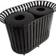 - Fully welded, slatted steel durable receptacles are suitable for parks, universities, apartment and office complexes and city streets.