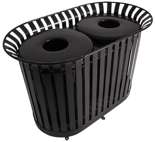 Metal Outdoor Slatted Steel Trash - Two Compartment Recycling - Model WR196