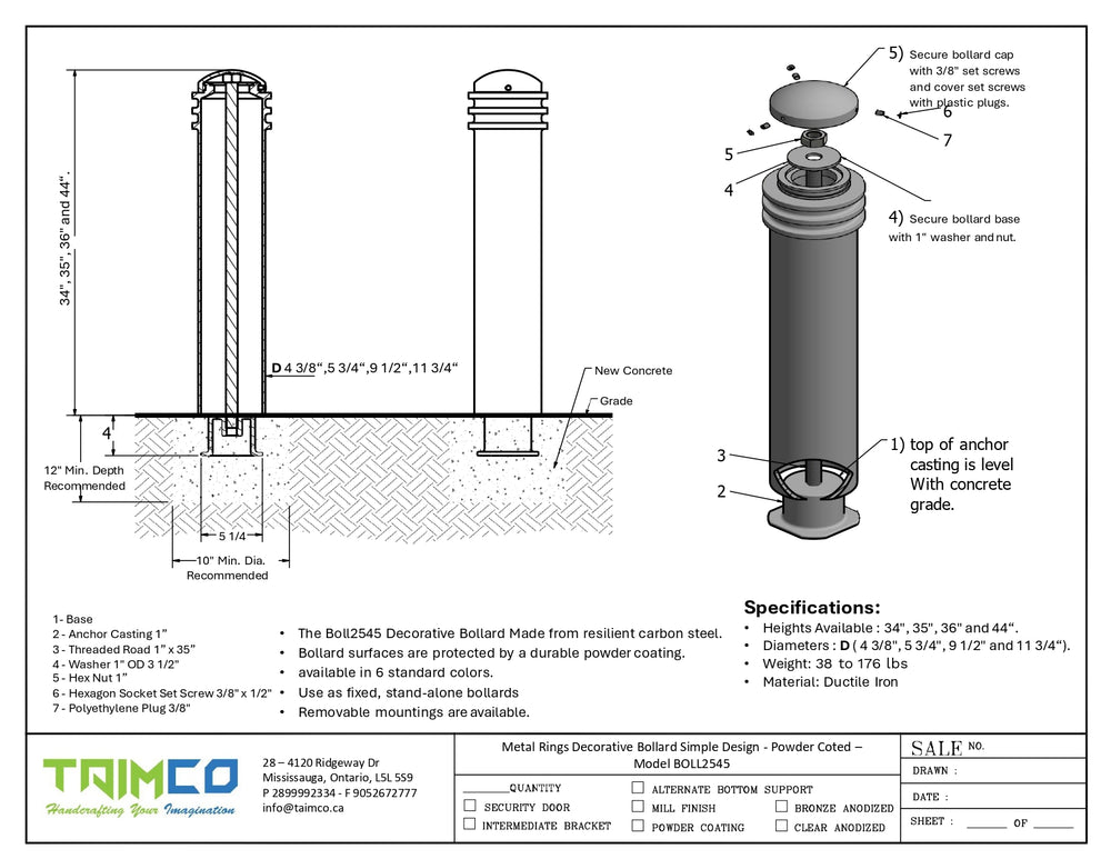 Metal Rings Decorative Bollard Simple Design - Powder Coted - Model BOLL25455
