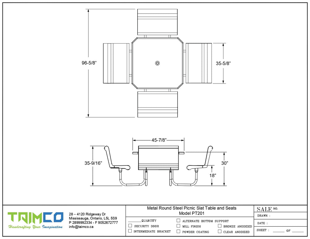 Metal Round Steel Picnic Slat Table and Seats - Model PT201