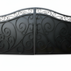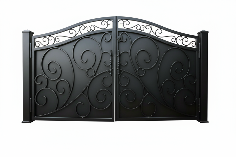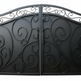 Featuring symmetrical scrollwork and a block-style emboss design, the gate offers both security and visual impact. Its dual swing configuration makes it ideal for wide driveways, while the custom fabrication ensures a perfect fit for your space.