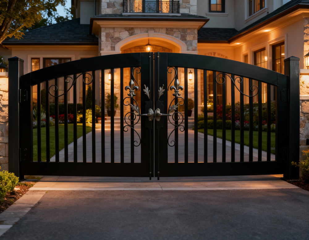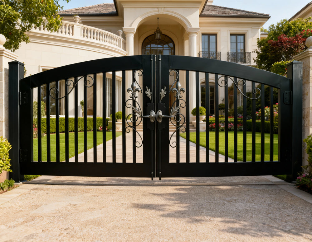 Upgrade your home's curb appeal and security with the DWG710 Steel Driveway Gate—a premium dual-swing entry gate crafted from solid black powder-coated steel. Designed with clean vertical slats and a graceful arched top, this gate blends modern minimalism with timeless elegance, making it the perfect statement piece for upscale residential properties, coastal homes, and garden entrances.