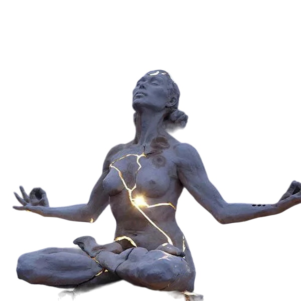 Introducing the Large Bronze Sculpture of a Meditating Person with Glowing Cracks, a stunning piece that embodies the essence of inner light and transformation. This exquisite sculpture captures the serene presence of a meditating figure, making it a perfect addition to gardens, parks, and other outdoor settings.