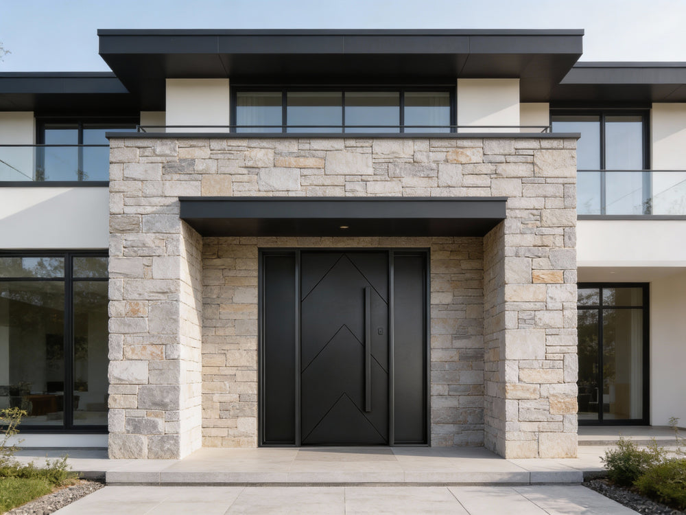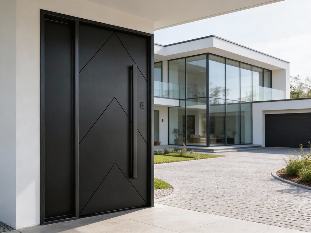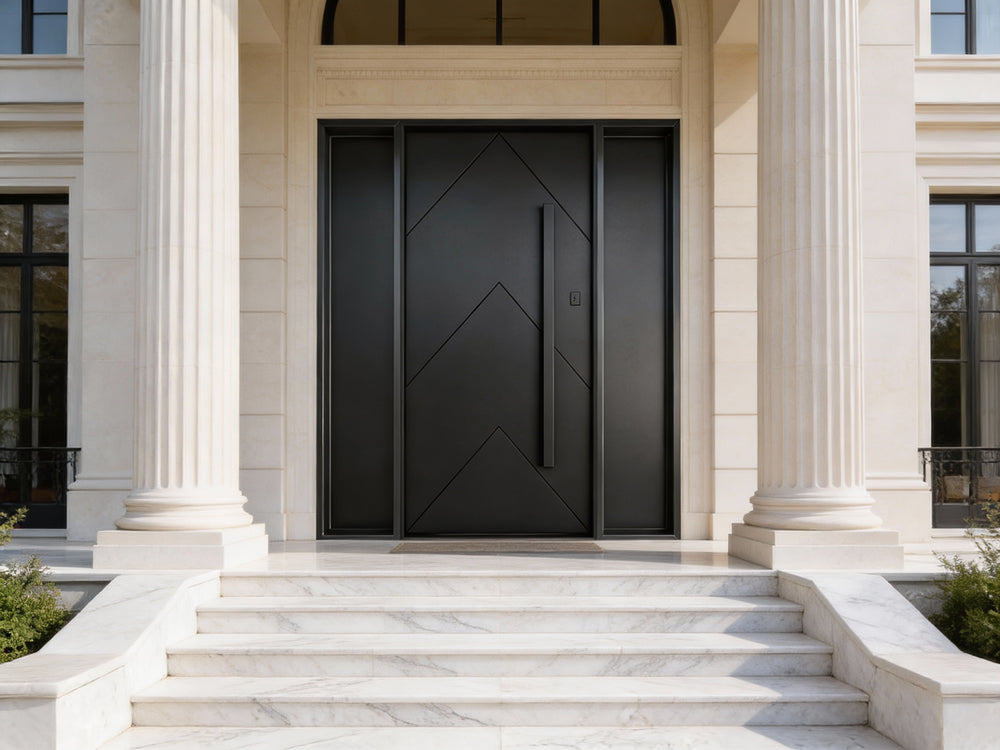 Transform your home’s facade with the IWD986 modern iron front door, an architectural statement crafted for style and durability. Ideal for homes across Canada and the U.S., this chevron-pattern wrought iron door with glass panels delivers a seamless blend of function and flair. Designed for minimalism lovers and modern architects, the pre-hung design features powder-coated steel, custom side lites, and energy-efficient construction. Upgrade to a sleek and secure entryway with this urban iron door design.