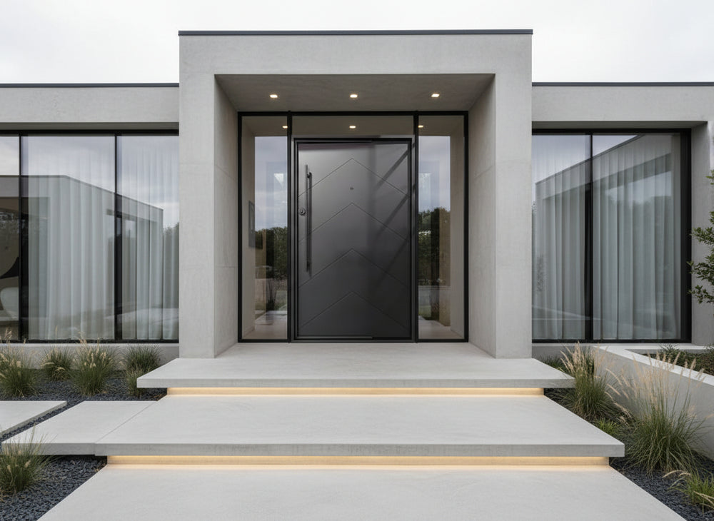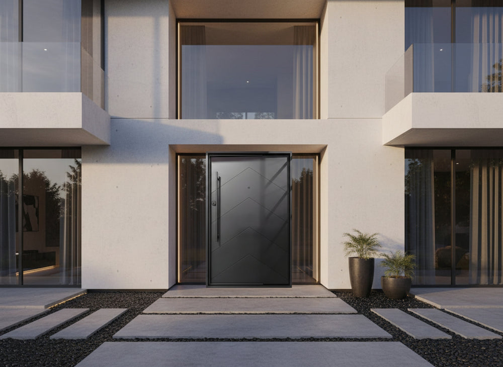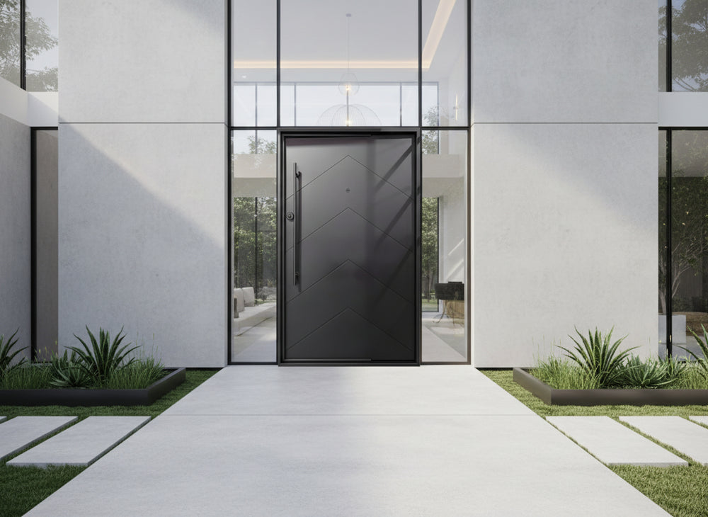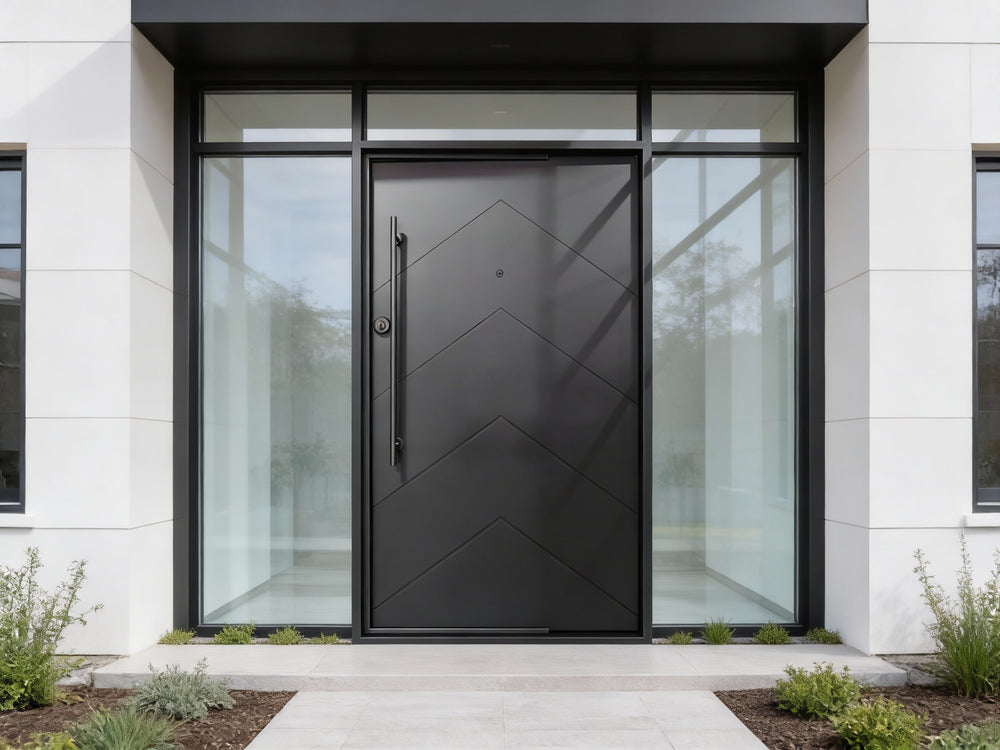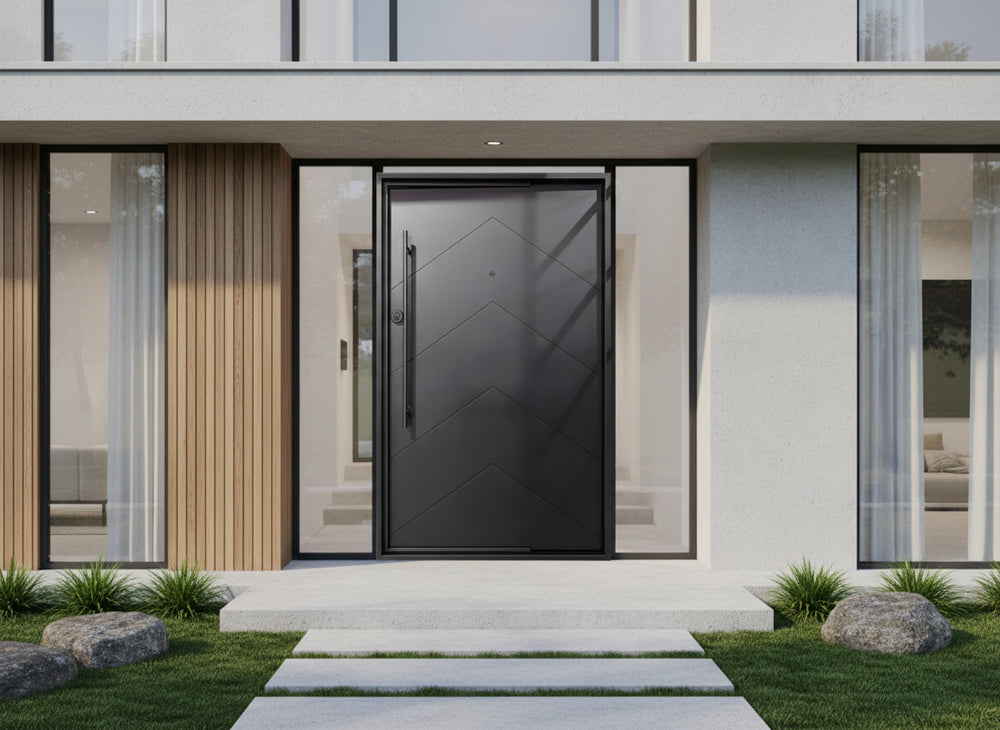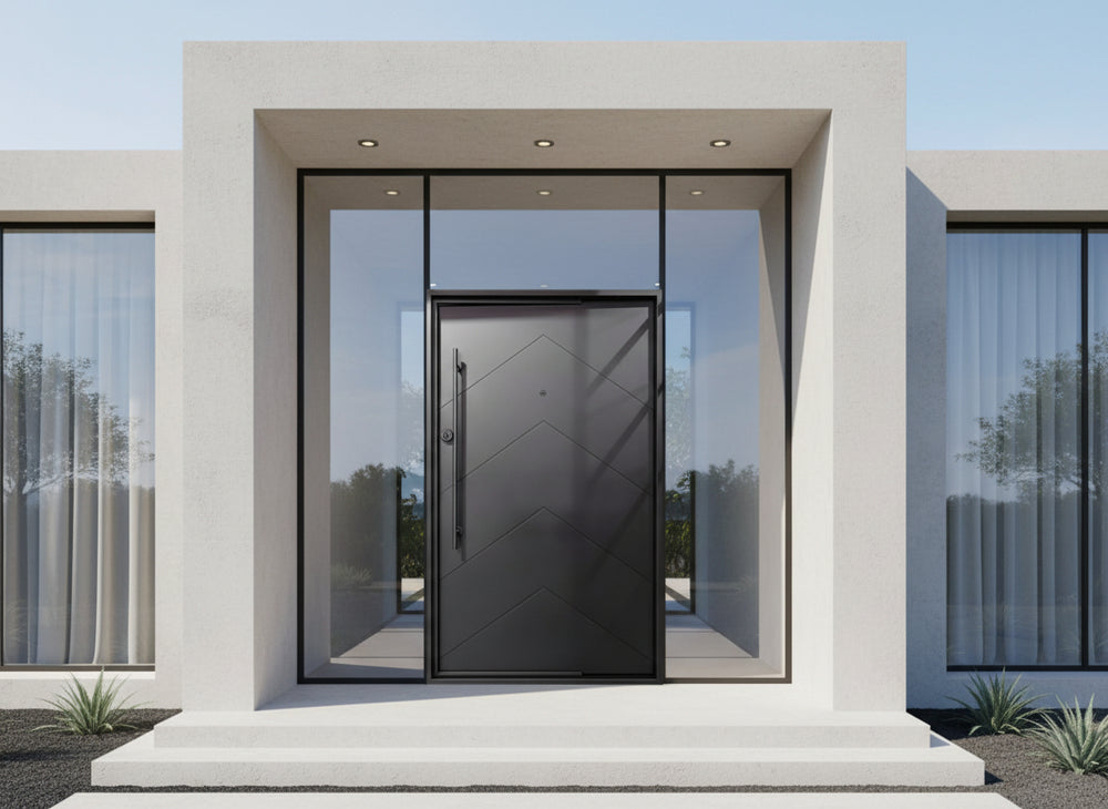 This door is ideal for residential front entrances, upscale commercial façades, and architectural projects seeking modern flair with robust protection.