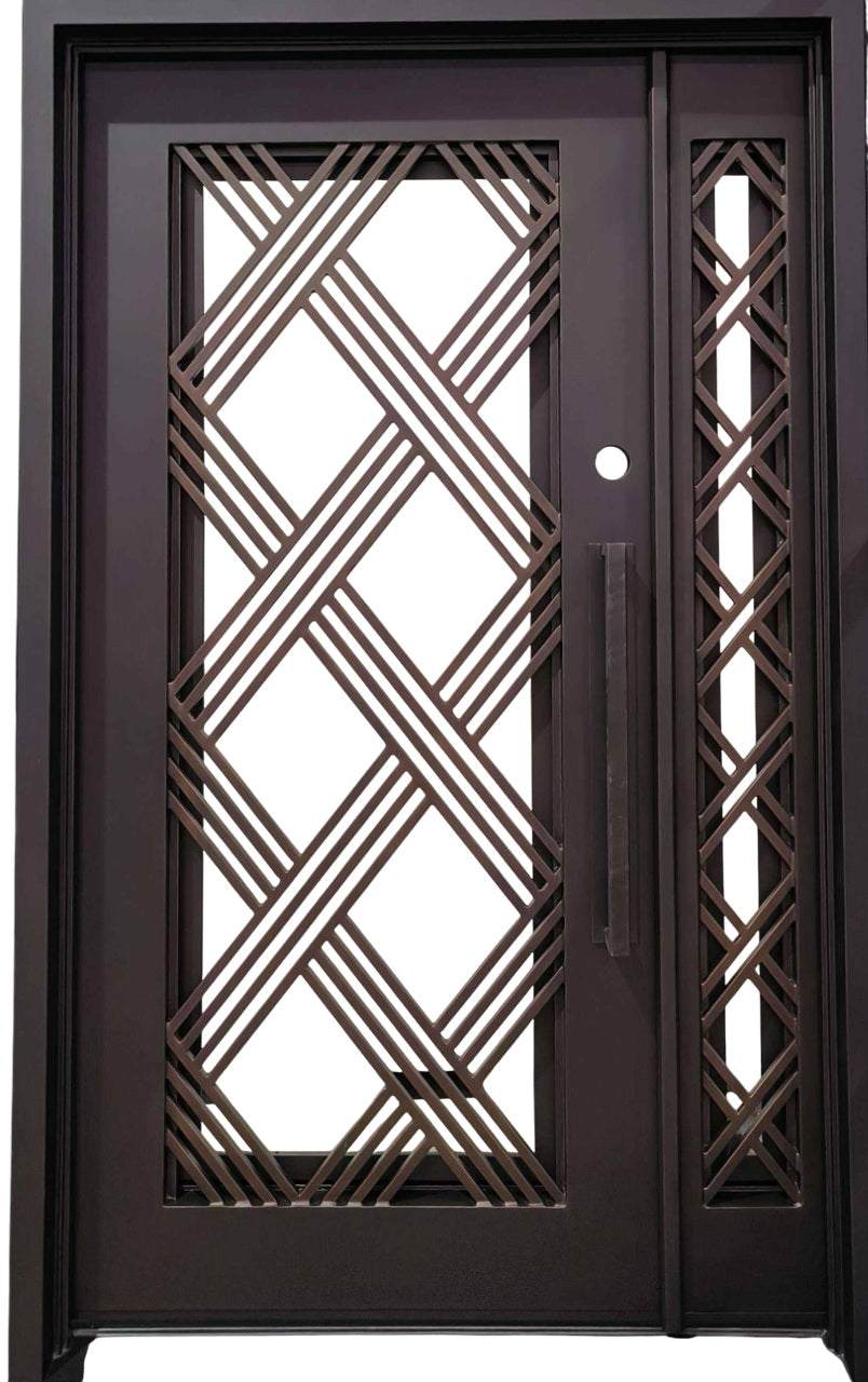 Strike a perfect balance between elegance and modern geometry with Model IWD 1015. This handcrafted iron door showcases bold diamond-patterned gridwork within a clean square top frame — a statement piece for contemporary builds. The design’s sharp angles and symmetrical rhythm complement sleek architectural lines, while its forged strength and premium finish provide enduring style and performance. A perfect blend of aesthetic clarity and rugged durability.