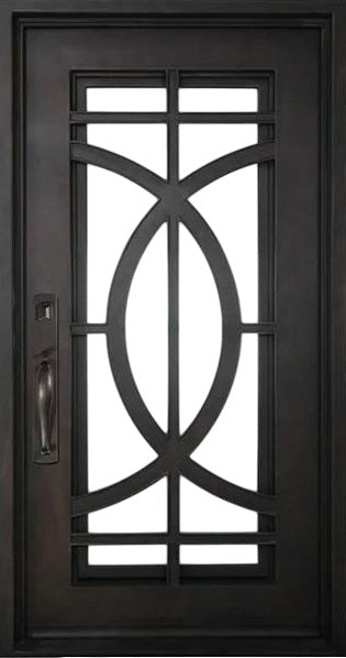 Modern Wrought Iron Door with Square Top and Oval Geometric Panel – Model # IWD 1022