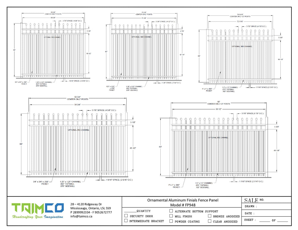 Ornamental Aluminum Finials Fence Panel - Model # FP948