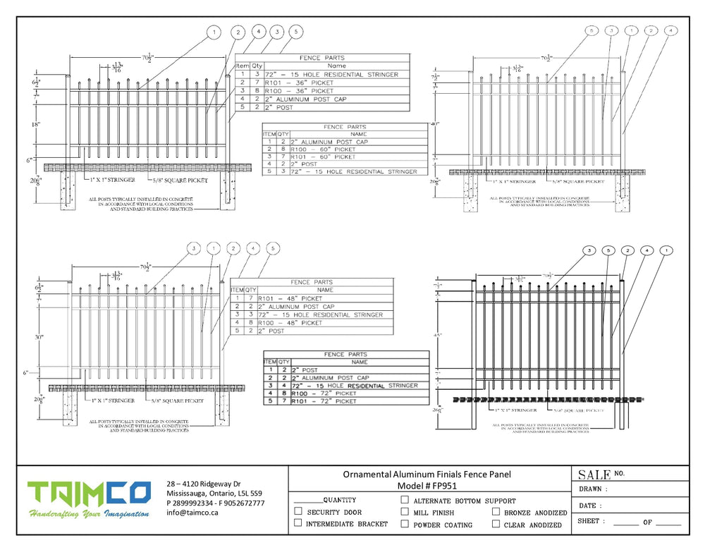 Ornamental Aluminum Finials Fence Panel - Model # FP951