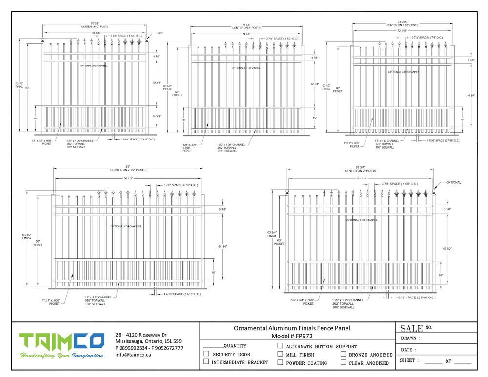 Ornamental Aluminum Finials Fence Panel - Model # FP972