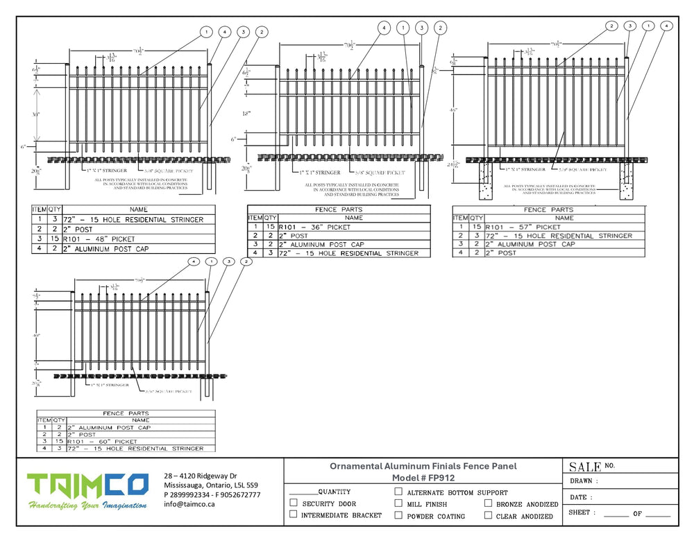 Ornamental Aluminum Finials Fence Panel - Model # FP912