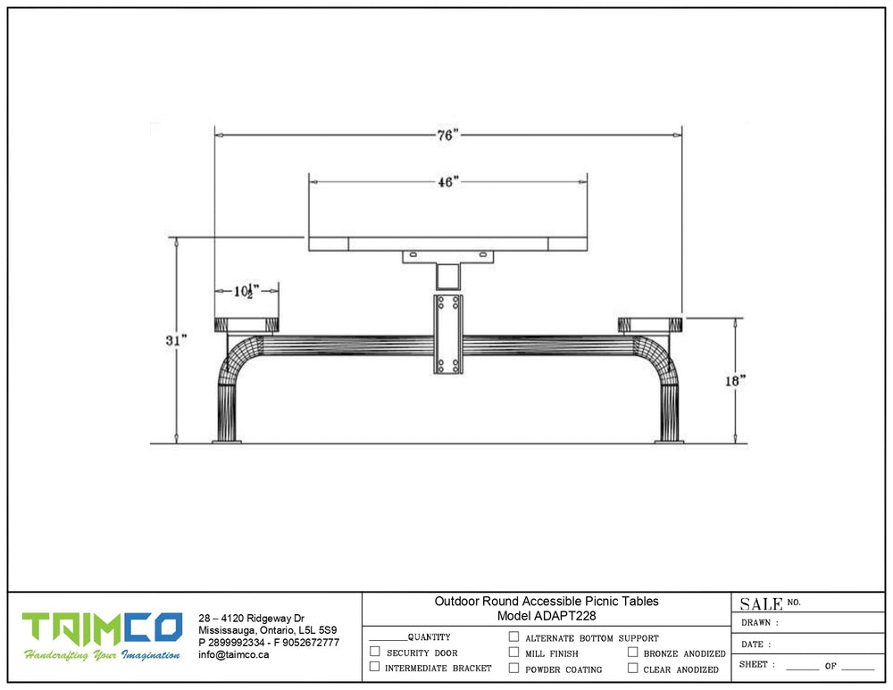 The table features a 3/4” #9 expanded metal top and seats, ensuring both durability and comfort. The 2-7/8" O.D. span style frames provide robust support for this attractive and functional piece. Available in both in-ground and surface mount models, optional cast aluminum grout covers can be powder-coated to match the frame colour.