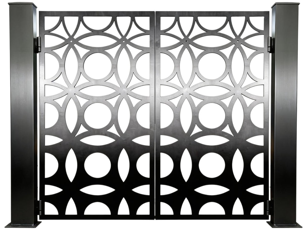 Ovalveil Passage – Ornamental metal man door with interlocking oval lattice and circular cutout geometry Model # MG824