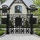 oval lattice man door, geometric metal gate, elliptical cutout garden entry, Canadian custom gate, Taimco Ovalveil Passage model, manual operation decorative door