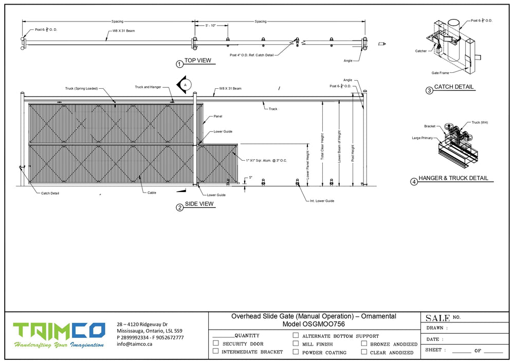 TAIMCO Heavy Duty Overhead Slide Gate, Heavy-Duty Overhead Gates, Commercial Slide Gates, Industrial Slide Gates, High-Security Slide Gates, Aluminum Slide Gates, Weather Resistant Gates, Maintenance-Free Slide Gates, Durable Overhead Gates, Smooth Operation Gates, TAIMCO Gate Systems, High-Performance Slide Gates