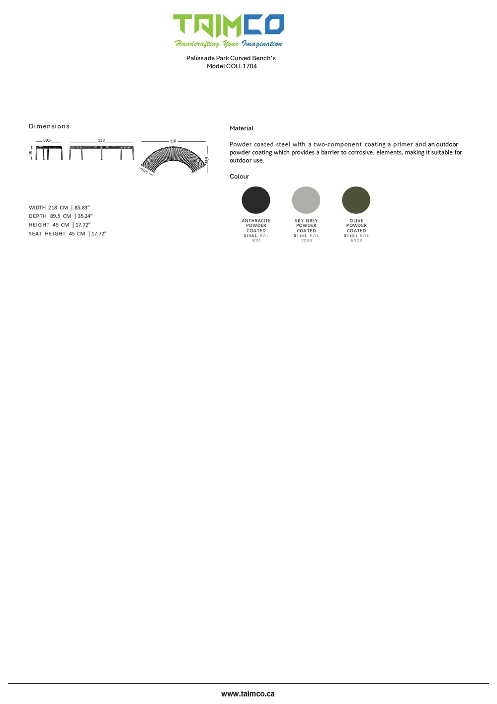 Palissade Modular Circular Bench Curved pieces to be put together and form Multiple designs to meet site needs, it is a sturdy and durable outdoor bench made of electro-coated steel with an anti-corrosion finish. Its circular design is perfect for encircling trees, plants, or other objects while maximizing seating capacity. The bench is ideal for commercial use and is available with optional memorial plaques.