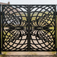 Papillonveil Passage – Ornamental metal man door with stylized butterfly medallions and geometric lattice web Model # MG772