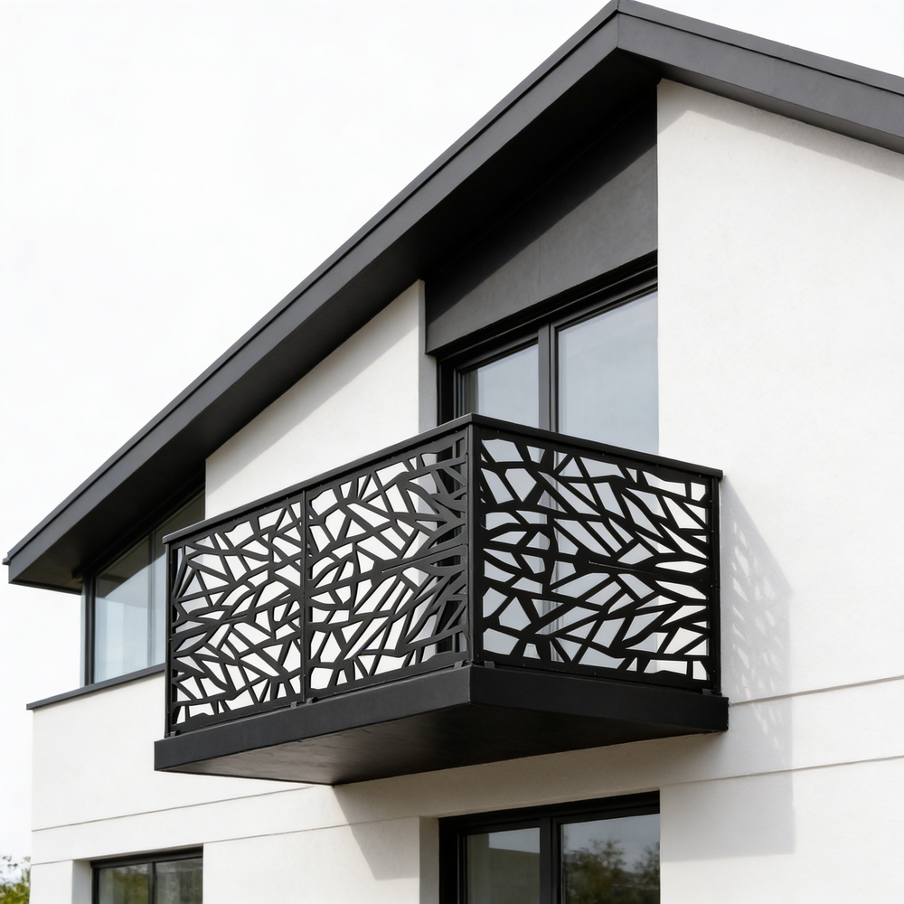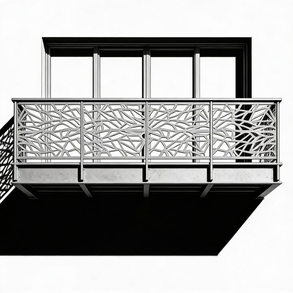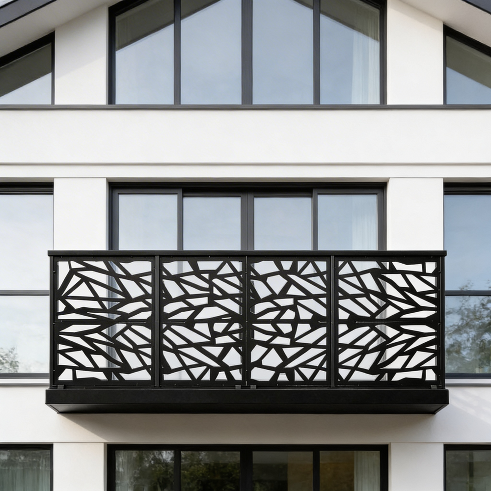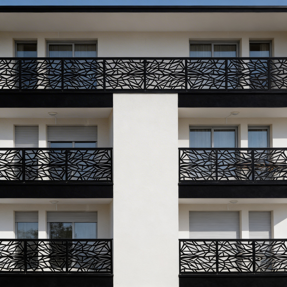 Plasma-cut balcony railing, Steel balcony railing, Modern balcony railing, Decorative balcony railing, Durable balcony railing, Customizable balcony railing, Weather-resistant balcony railing, Residential balcony railing, Commercial balcony railing, Balcony safety railing