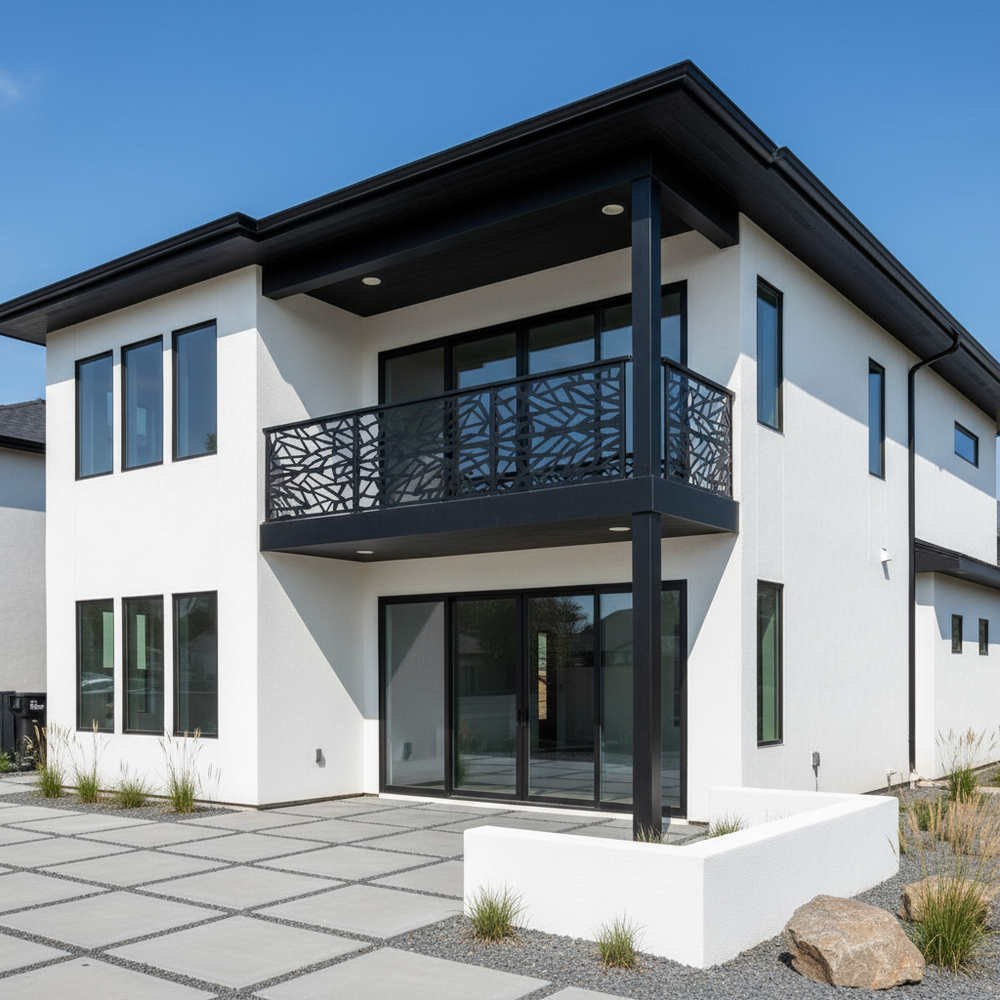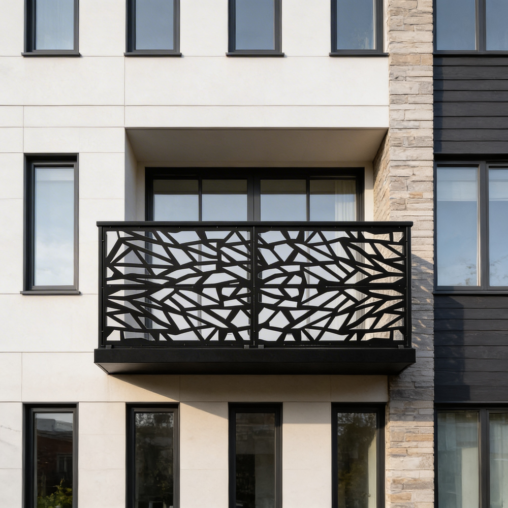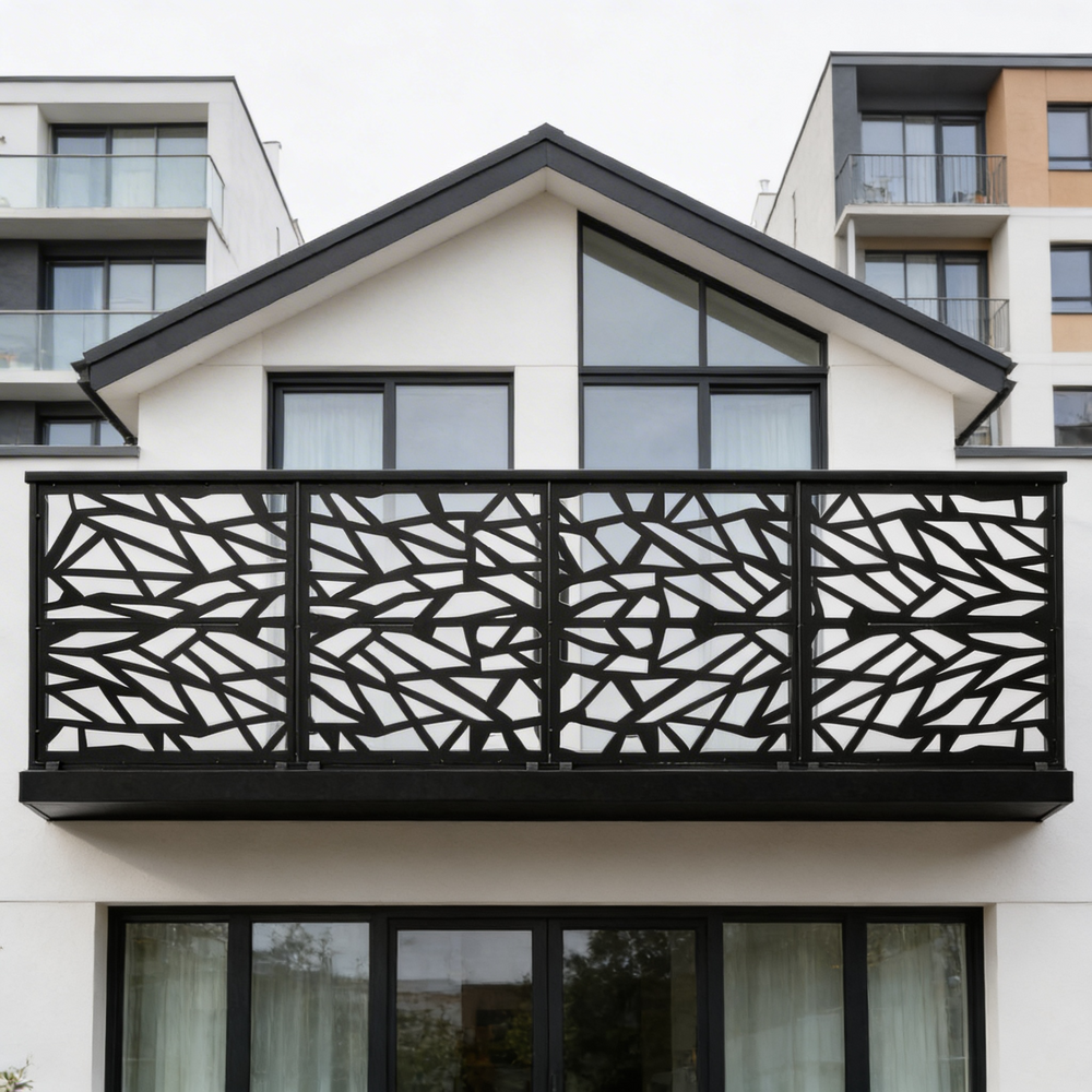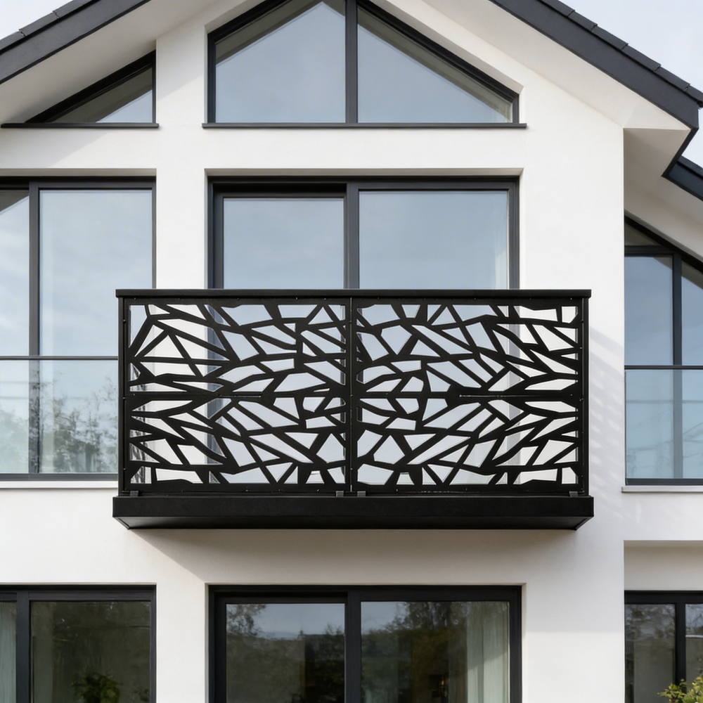 Plasma-cut balcony railing, Steel balcony railing, Modern balcony railing, Decorative balcony railing, Durable balcony railing, Customizable balcony railing, Weather-resistant balcony railing, Residential balcony railing, Commercial balcony railing, Balcony safety railing