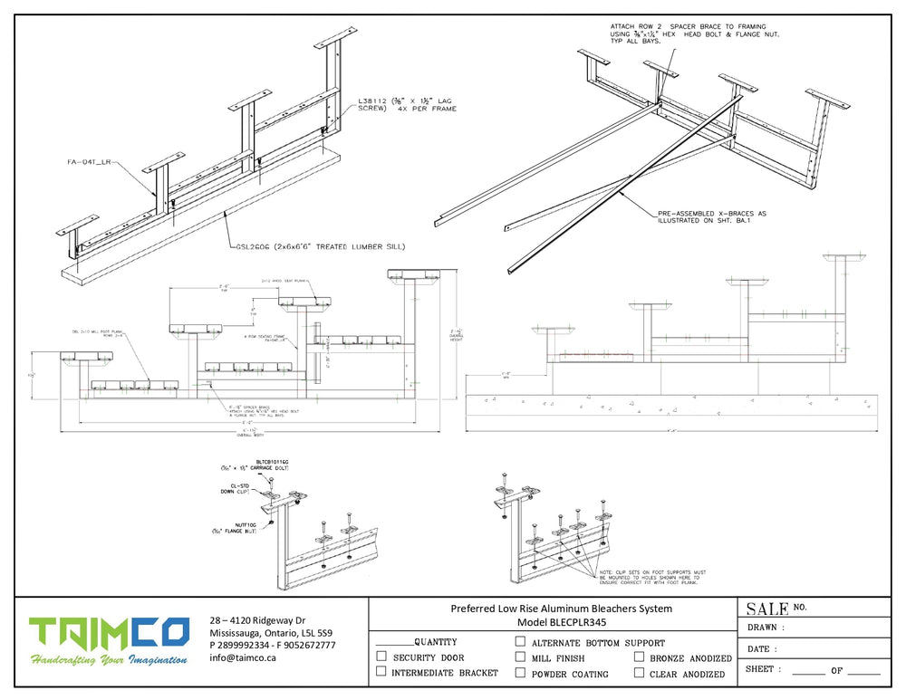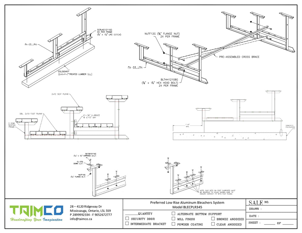 Preferred Low Rise Aluminum Bleachers System - Model BLECPLR345