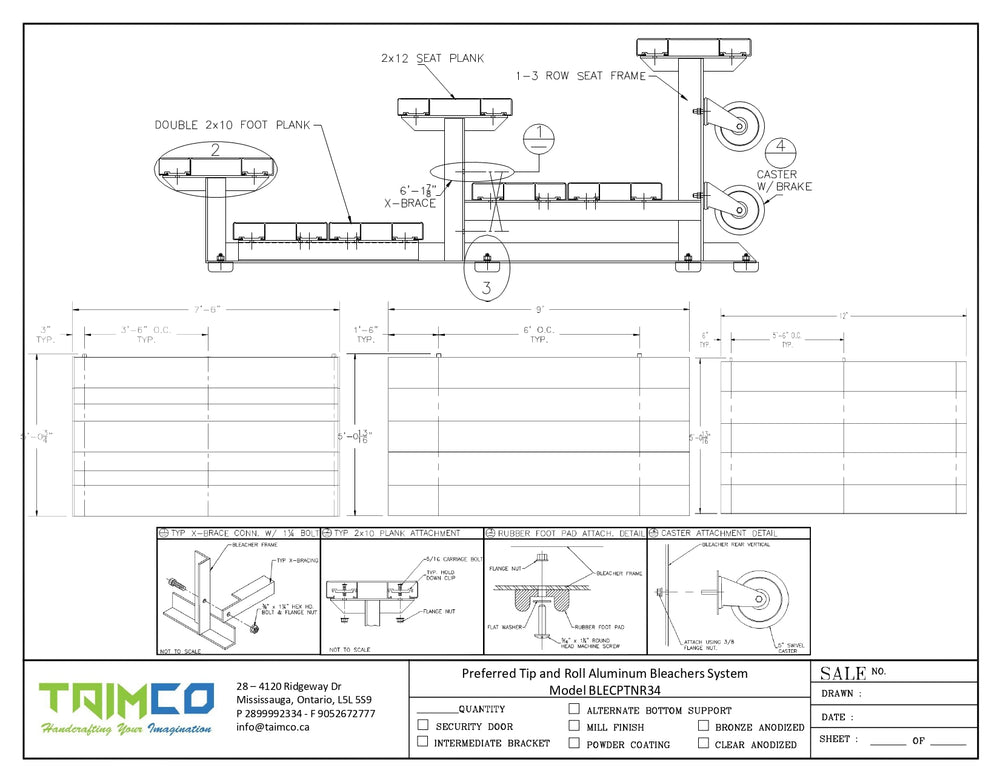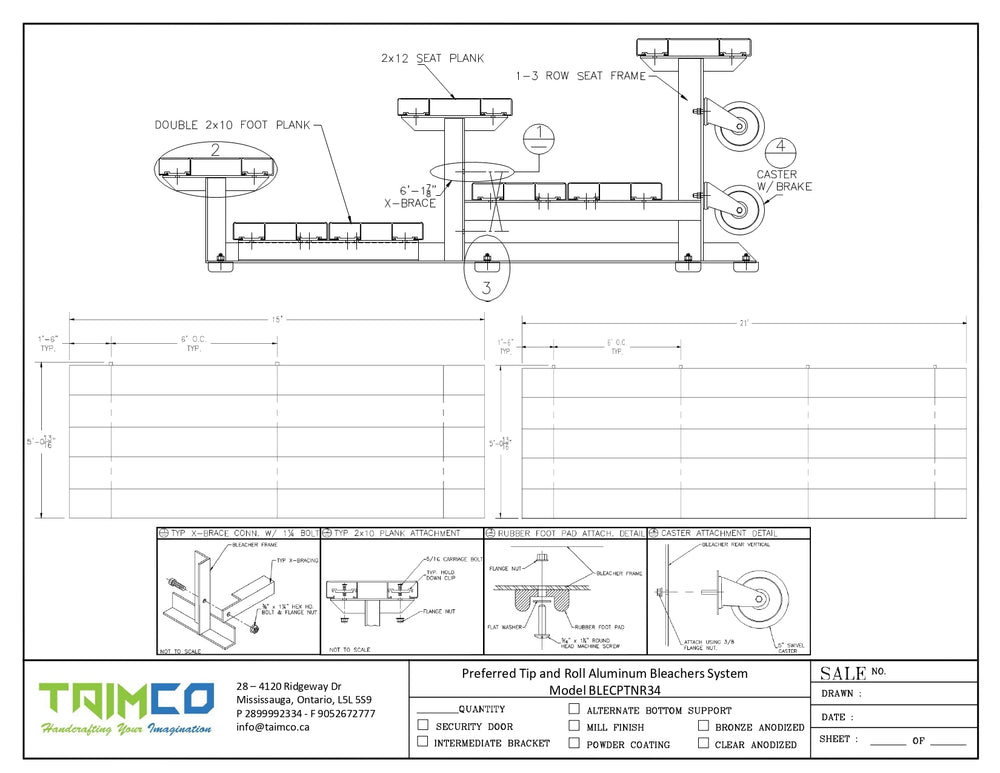 Preferred Tip and Roll Low Rise Aluminum Bleachers System - Model BLECLPTNR34