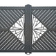 - Design: Chevron slats with central diamond cutout and radiating lines