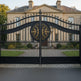 Regal crest Dominion – Wrought Iron Gate with Gold Emblem Panels Model # DWG138
