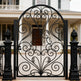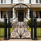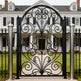 Regal Scrollwork Passage — Ornamental wrought iron gate with arched silhouette and symmetrical scrollwork Model # MG217