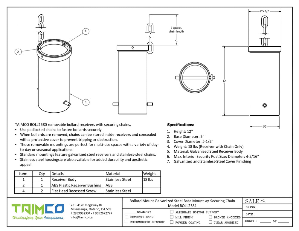 Enhance the security and flexibility of your bollards with our premium Removable Mounts featuring Securing Chains. These mounts allow for easy installation and removal of bollards, providing adaptable protection for various environments.