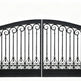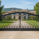 Rivet bloom Crest – Wrought Iron Gate with Floral Scrollwork & Arched Frame Model # DWG117