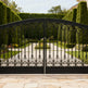 arched wrought iron gate, floral scroll estate gate, riveted ornamental gate, Canadian custom gate, Taimco decorative gate, luxury property gate, heavy-duty artistic gate design, classic driveway gate