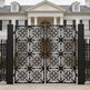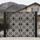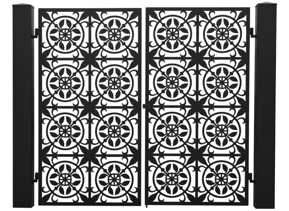rosette lattice man door, ornamental wrought iron gate, floral medallion garden entry, Canadian custom gate, Taimco Rosetteveil Passage model, manual operation decorative door